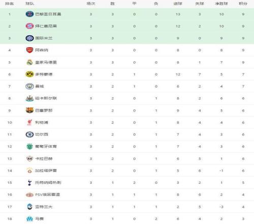 随着切尔西51+利物浦51+拜仁40,皇马10尤文,欧冠最新积分榜