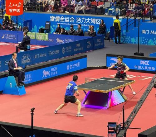 据人民日报消息,11月15日,十五运会乒乓球项目在澳门银河综艺馆展开两场男单半决赛争夺。刚刚,上海队选手樊振东以4∶2战胜北京队选手王楚钦,晋级男单决赛。他在决赛中的对手将是辽宁队选手袁励岑和海南队选手林诗栋之间的胜者。