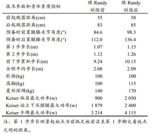 跟随兰迪训练前、后苏炳添部分技术参数和身体素质对比丨参考文献[1]