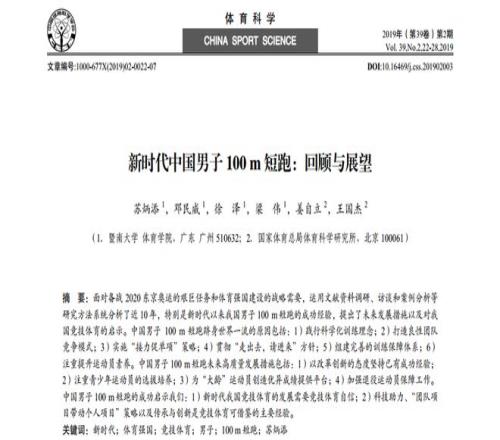 苏炳添以第一作者身份发表的论文丨参考文献[1]