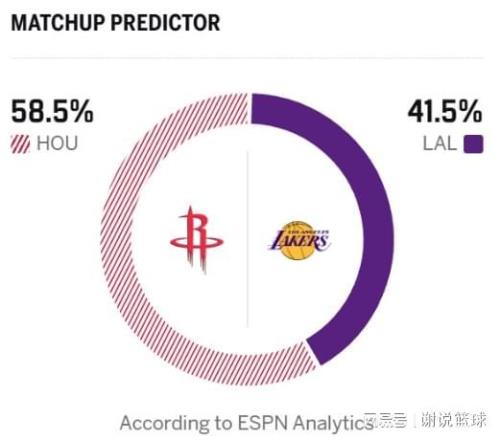 湖人在圣诞大战中,也是被外界看衰,尤其ESPN预测胜率上刚过四成。要知道湖人在自己主场作战,对面火箭这段时间,状态也不是特别好,已经跌至西部第六的位置,结果湖人却只有41.5%胜率,肯定是有点低了。