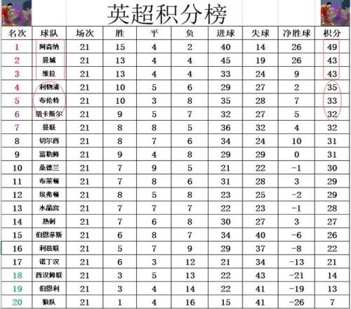 英超最新积分战报前6无1队赢球!阿森纳闷平利物浦仍多曼城6分