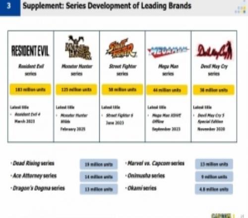 其他系列方面,《丧尸围城》系列累计销量1900万份,《漫画英雄VS卡普空》系列累计销量1300万份,《大神》系列累计销量480万份。